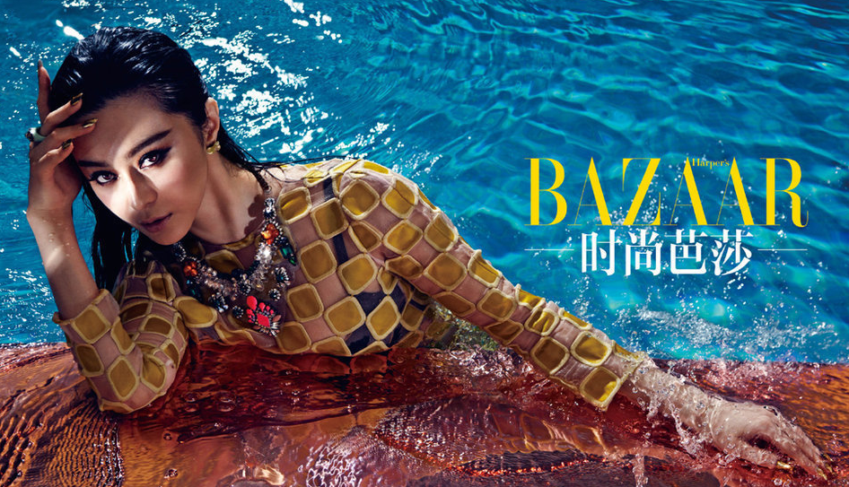 日前剛剛登頂福布斯2013中國名人榜的范冰冰一組《時尚芭莎》大片曝光,泳池戲水大玩金蛇出浴,盡顯狂野魅惑性感。