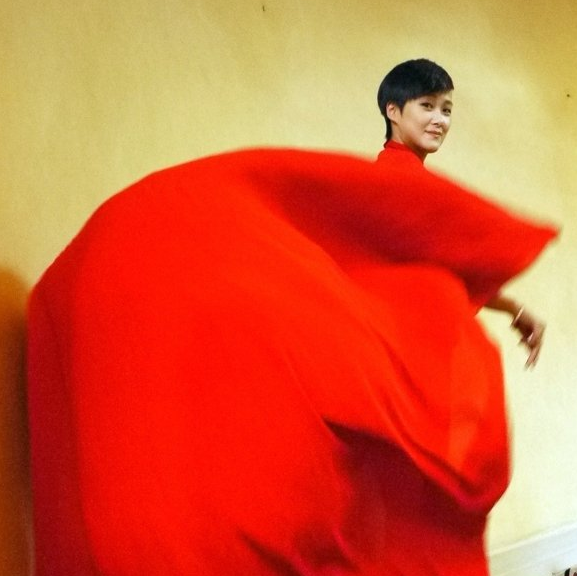 李宇春戛納紅毯首秀 霸氣紅袍亮相氣場足